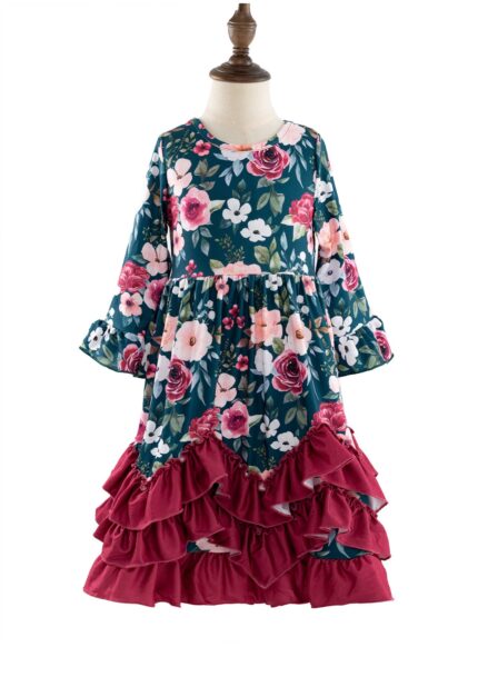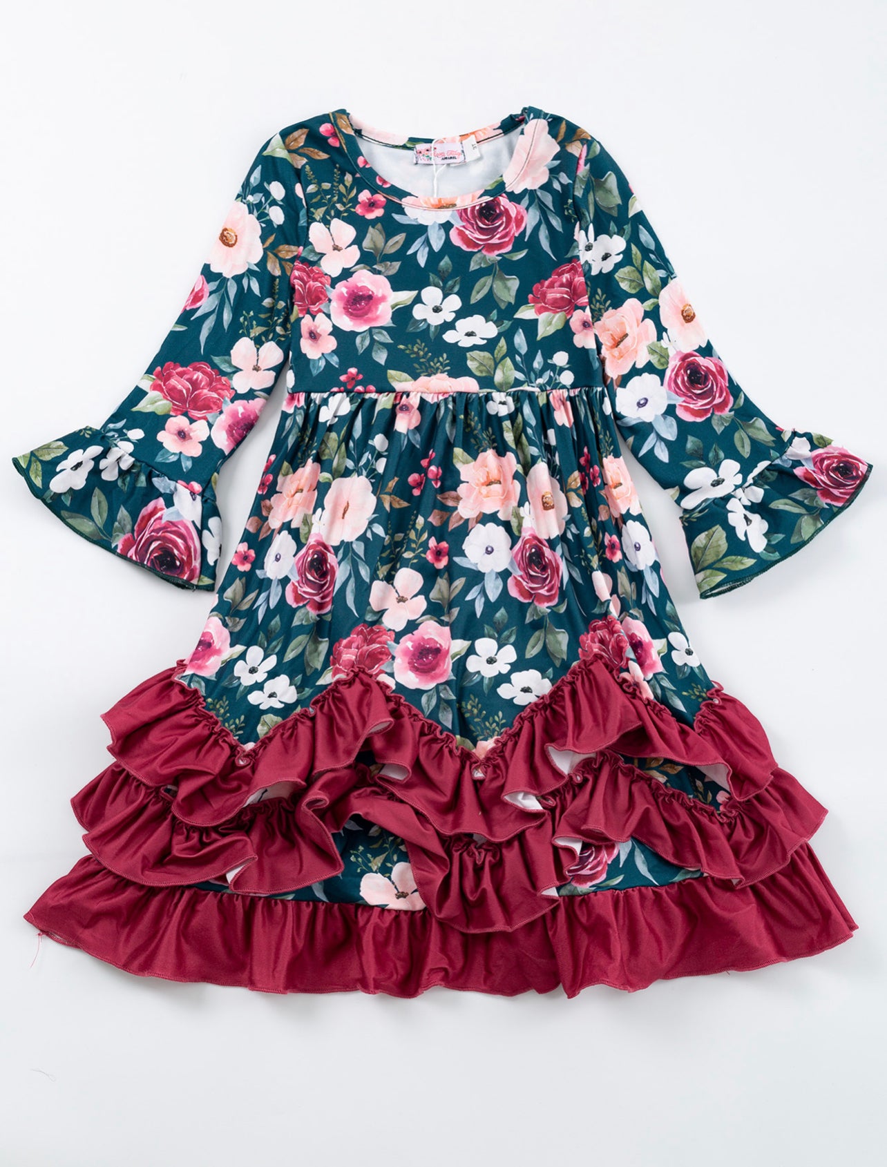 Jade Rose Floral Girls Ruffle Maxi Dress