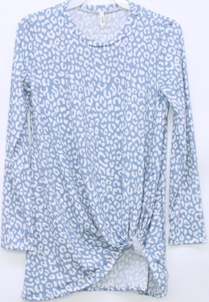 Girls Blue Leopard Print Knotted Tunic Top T2486-K9
