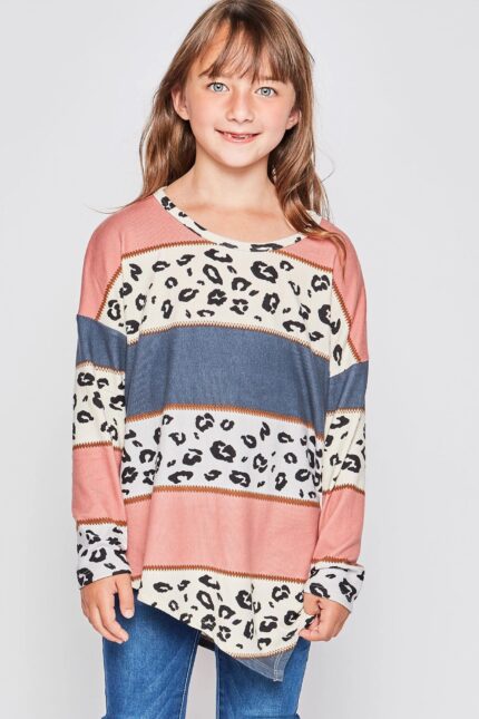 Girls Size Leopard Asymmetrical Top T2636-K4